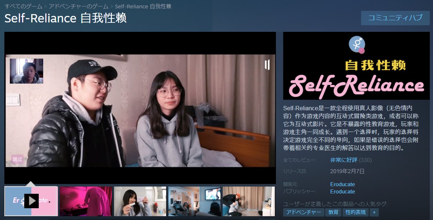 中国・上海の中高生が開発した性教育を題材とした、インディゲーム『Self-Reliance 自我性頼』がSteamで配信され好評を博している。