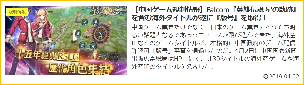 『日本ファルコム(Falcom)』が中国ゲーム大手『Changyou(暢游)』と中国展開を進める『英雄伝説 星の軌跡』が中国政府のゲーム配信許認可『版号』審査を通過した旨は先日お伝えした通りだ。