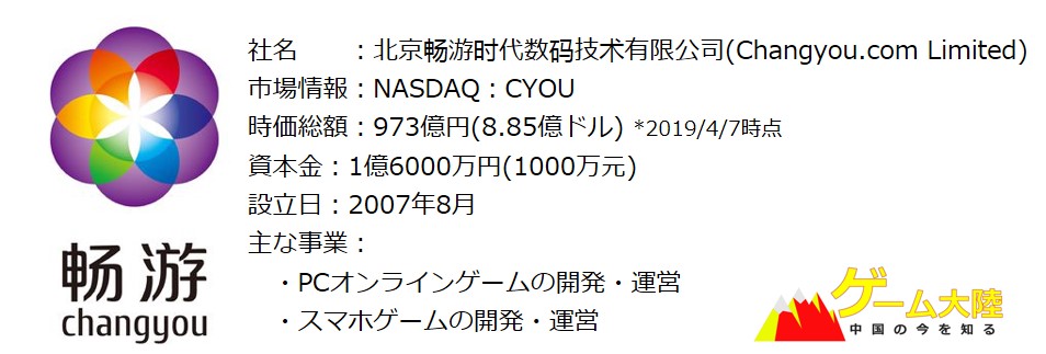 『Changyou』は中国IT大手『Sohu(搜狐)』のゲーム部門がスピンアウトして2007年に独立したゲーム会社で、前身である『Sohu』のゲーム部門は02年からゲーム事業を行っている中国有数の老舗企業だ。