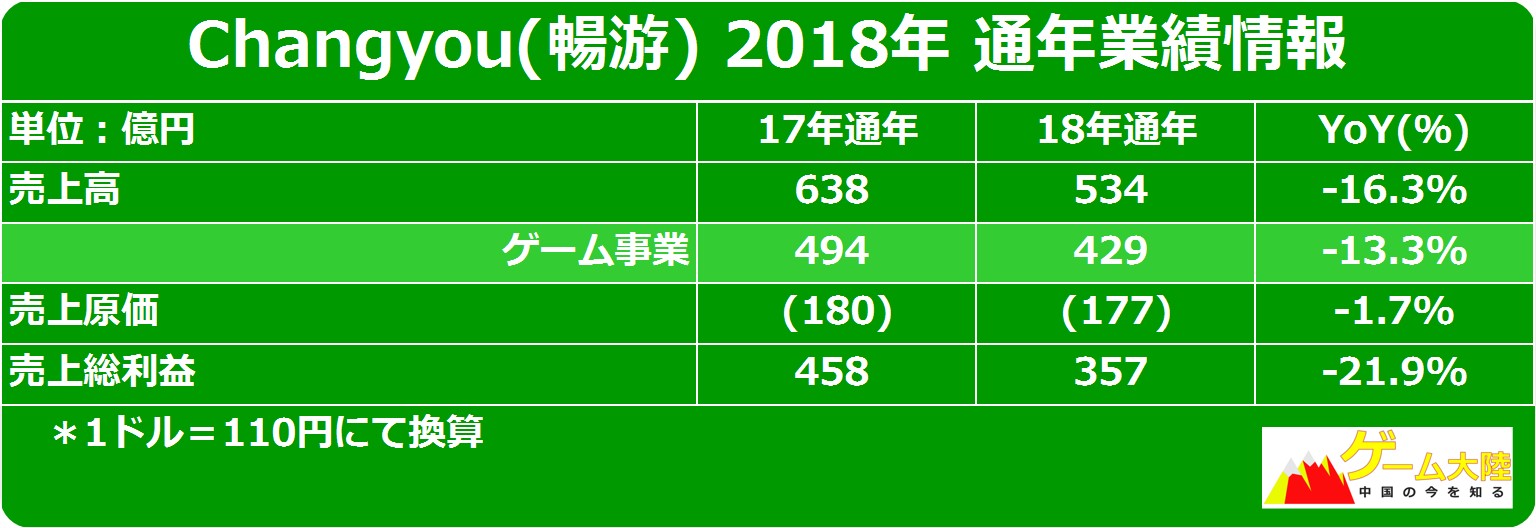 この様な成功を日本ファルコムの『英雄伝説 星の軌跡』にも期待する方は多いのではないだろうか。中国側のパートナーである『Changyou』の2018年通期決算が公開されているので以下に紹介したい。