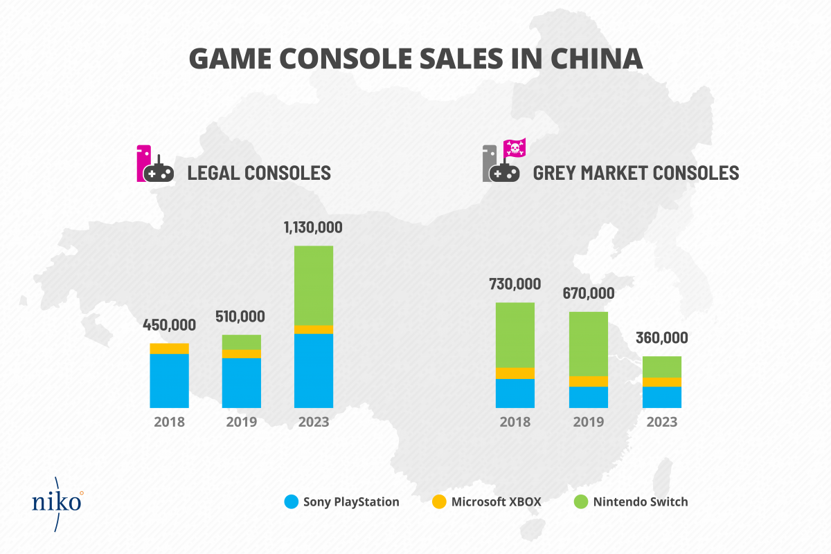香港などからの並行輸入品として中国市場に出回っているコンソールゲーム機の販売台数(グレー市場)は依然として正規流通品よりも多いが、4年後の2023年には正規流通品が大半を占めるようになると予測している。