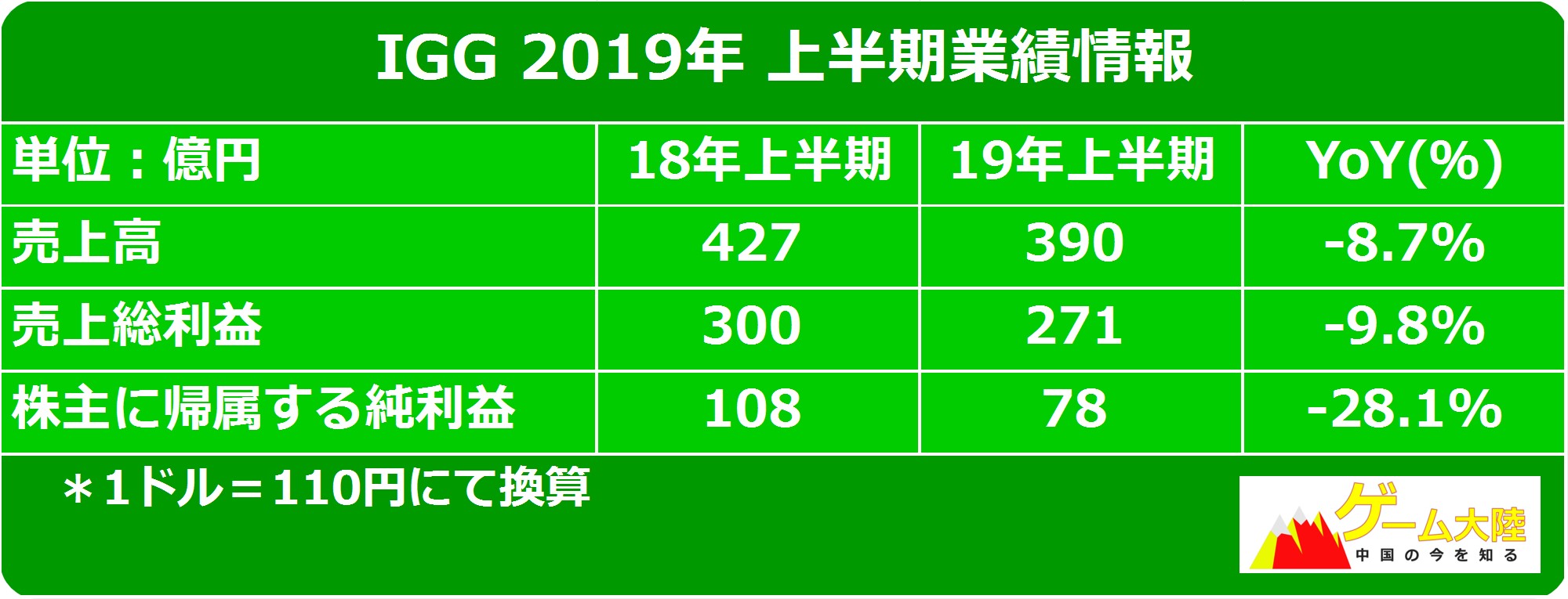 『IGG』の2019年上半期の業績は以下の通りだ。