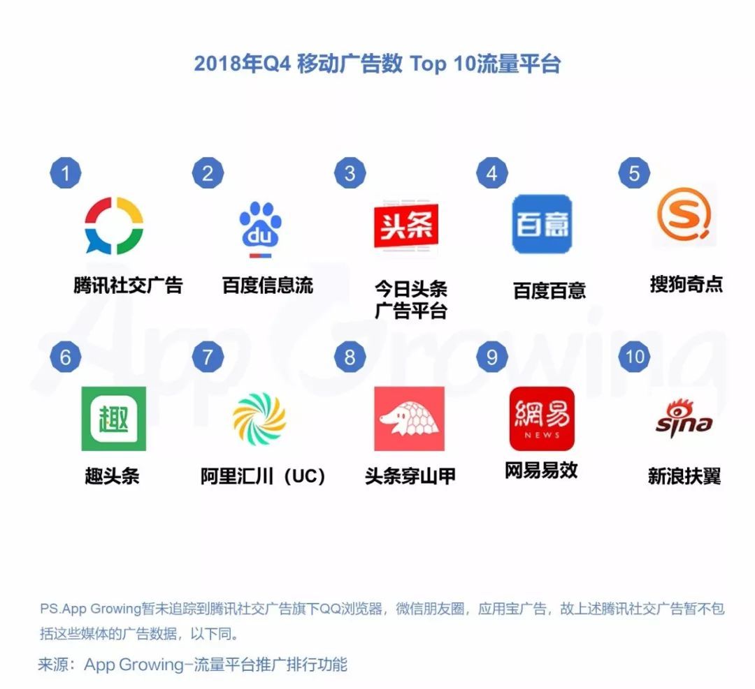 出所:App Growing『2018年Q4 各大移动广告平台推广趋势洞察』
